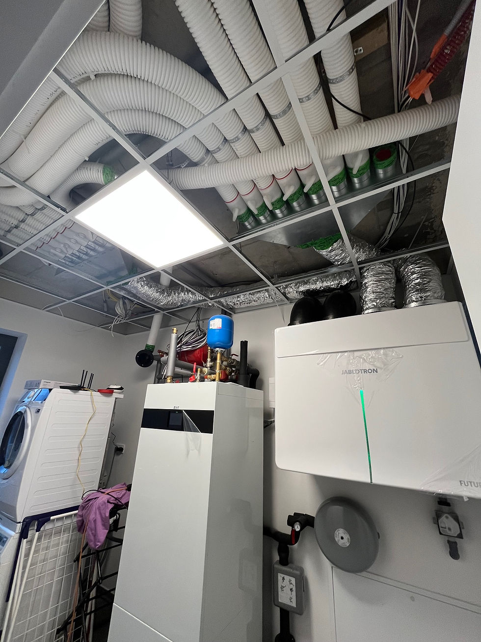 Součástí prezentace firmy VETREJ.COM je také fotogalerie z realizovaných zakázek, která ukazuje reálné provedení instalací v rodinných domech. Fotografie zachycují technické řešení rozvodů, umístění jednotek i celkový přístup k montáži. Klienti si tak mohou udělat lepší představu o kvalitě provedení a stylu práce firmy ještě před samotnou poptávkou.